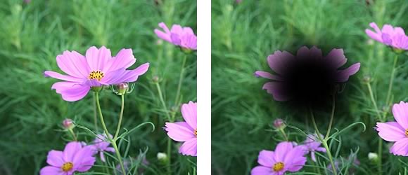 右:中心が暗く見える