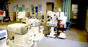 角膜内皮細胞検査、視野検査(FDT・ハンフリー)、眼底カメラ、OCT(眼底断層撮影)など最新の眼科検査機器を備え、コンタクトレンズ、白内障、緑内障、眼底疾患など眼科総合診療を行っています。手術やレーザー治療の必要な方は本院を紹介しますが、症例に応じて大学病院、公的病院との連携治療も行っております。目の病気にお悩みの方は、どうぞお気軽にご利用ください。
